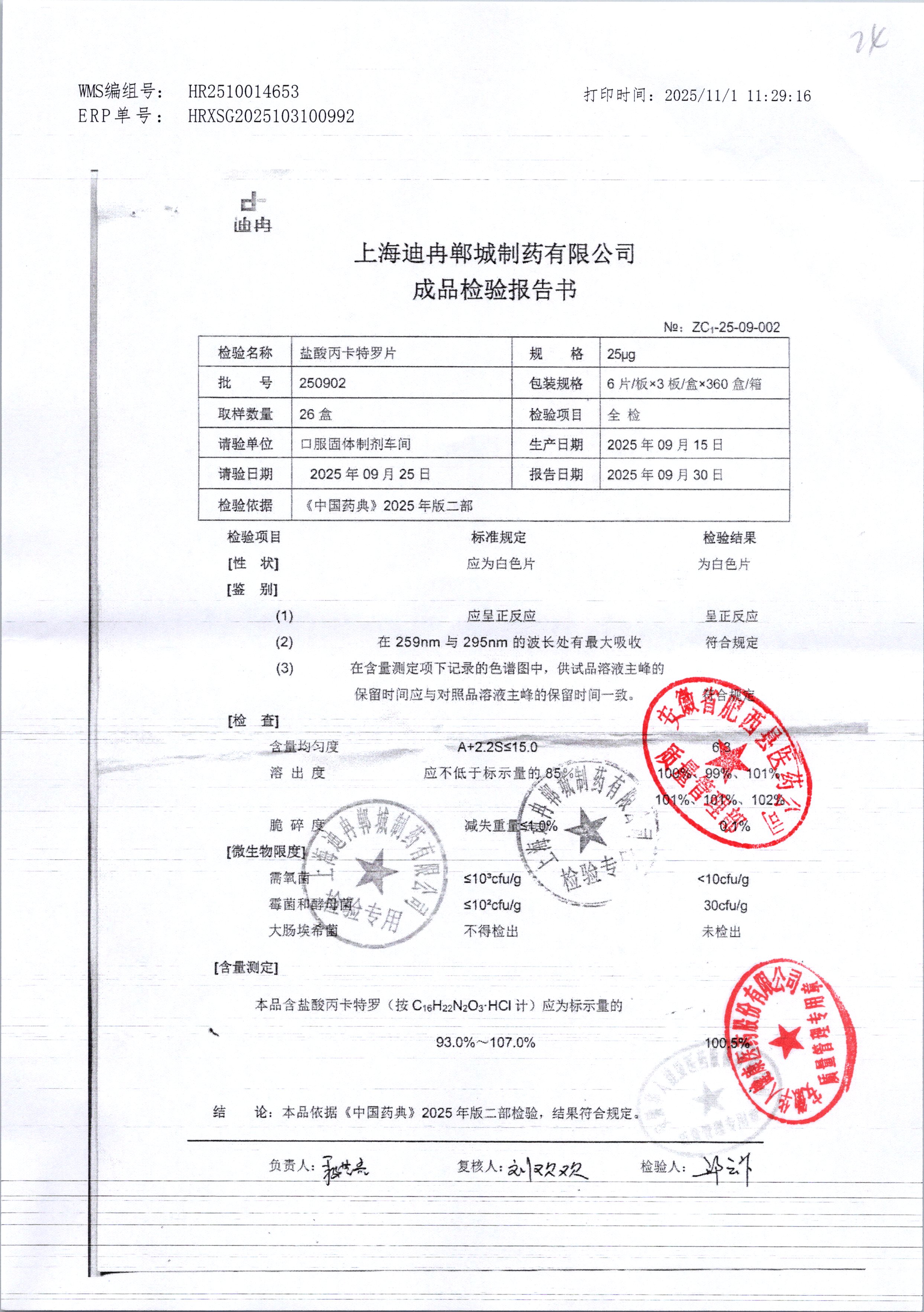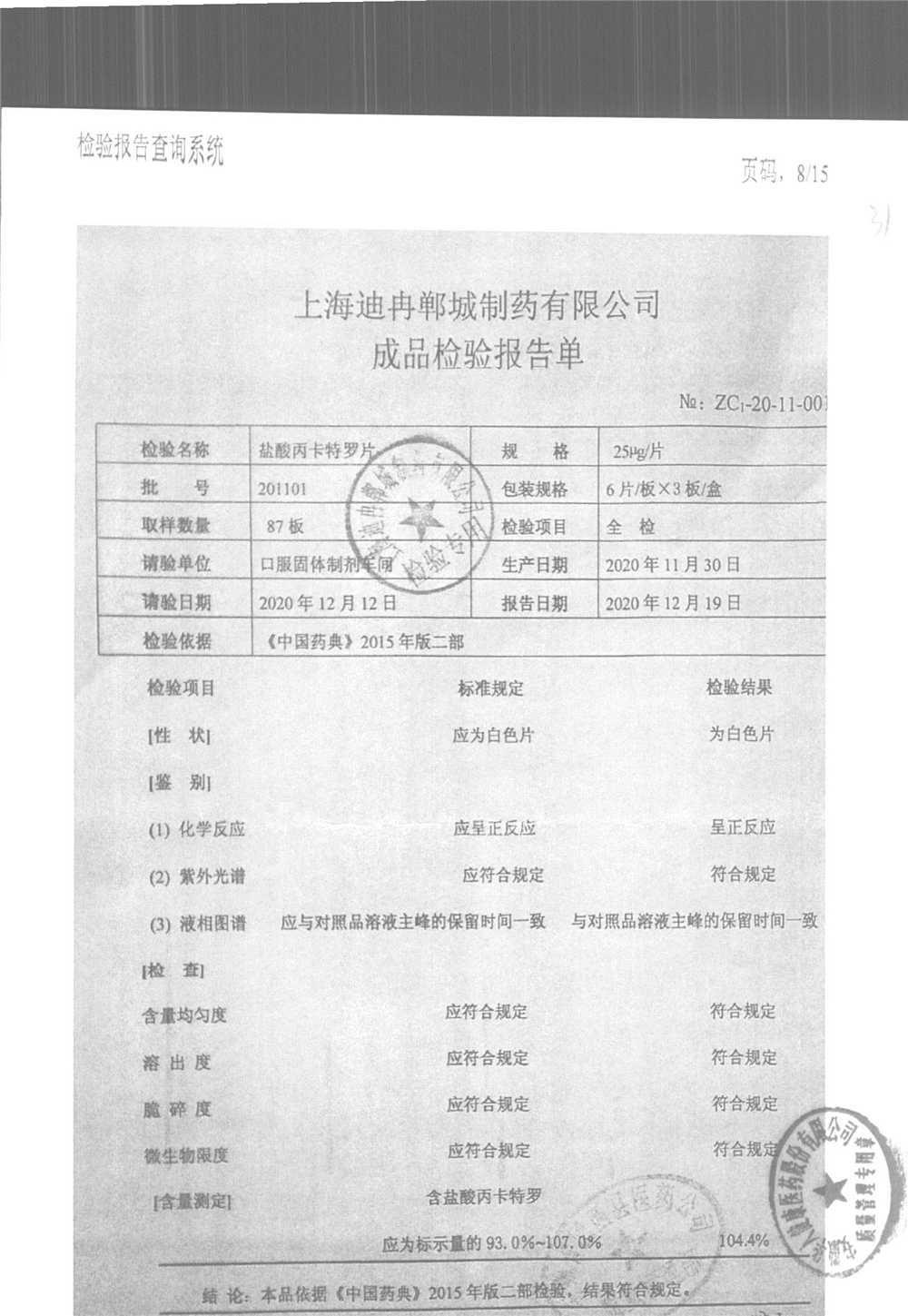 | 鹽酸丙卡特羅片 | 25ug*18s | 191201 | 查看詳情 |