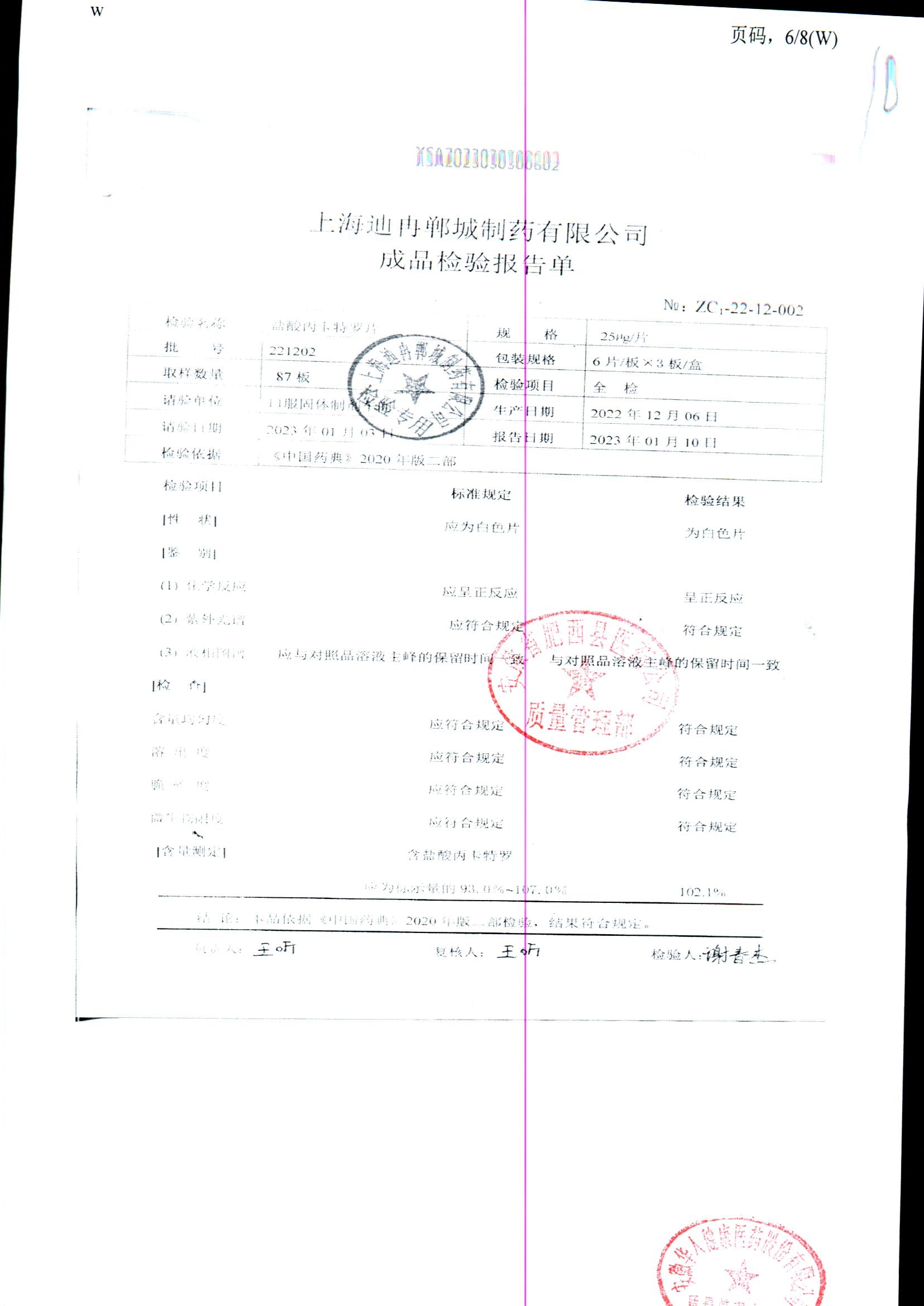| 名稱 | 規格 | 批號 | 藥檢報告 |