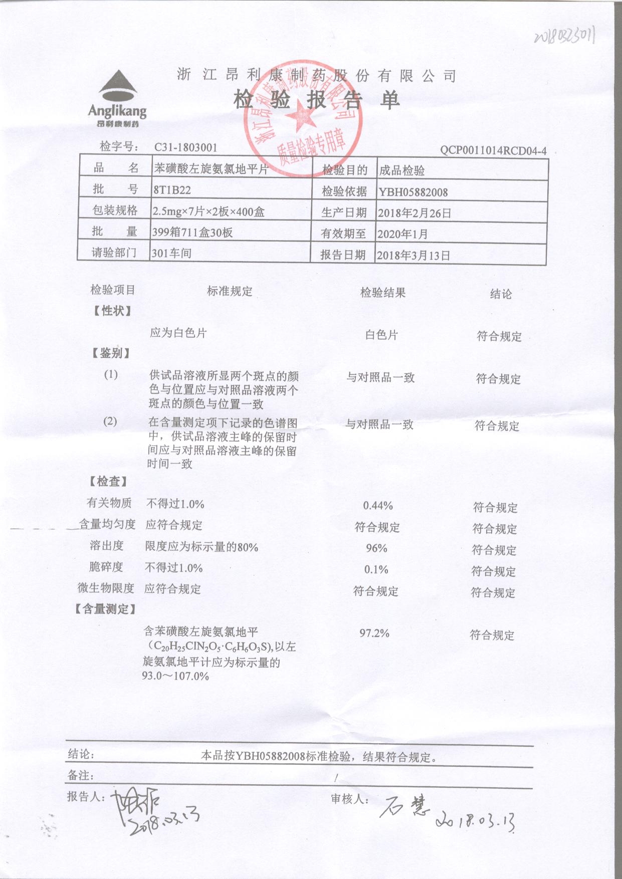 苯磺酸左旋氨氯地平片 2.5mg*7s 8T1B22 查看詳情