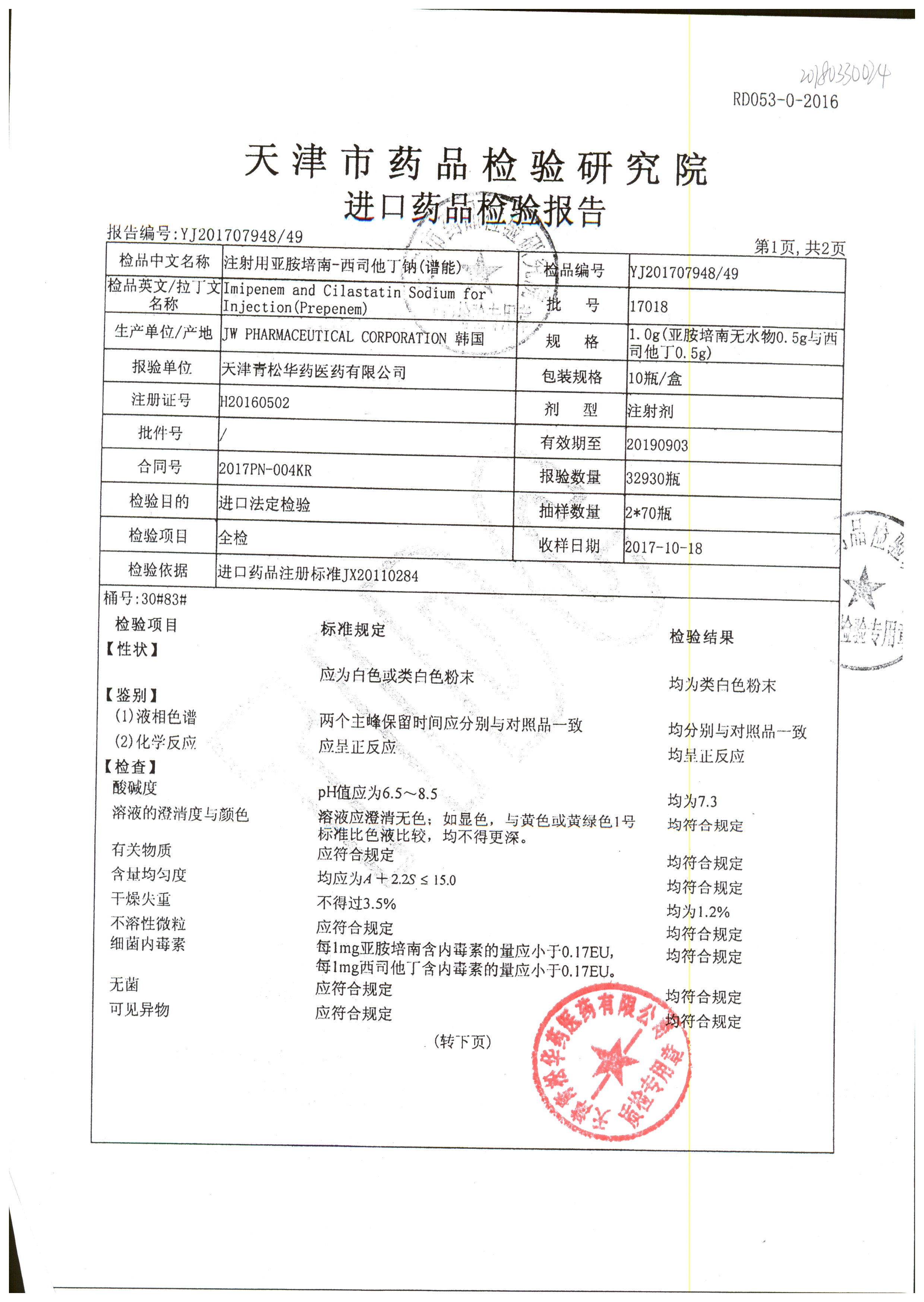| 注射用亞胺培南-西司他丁鈉 | 1g*10瓶 | 17025(4/4) | 查看詳情 |