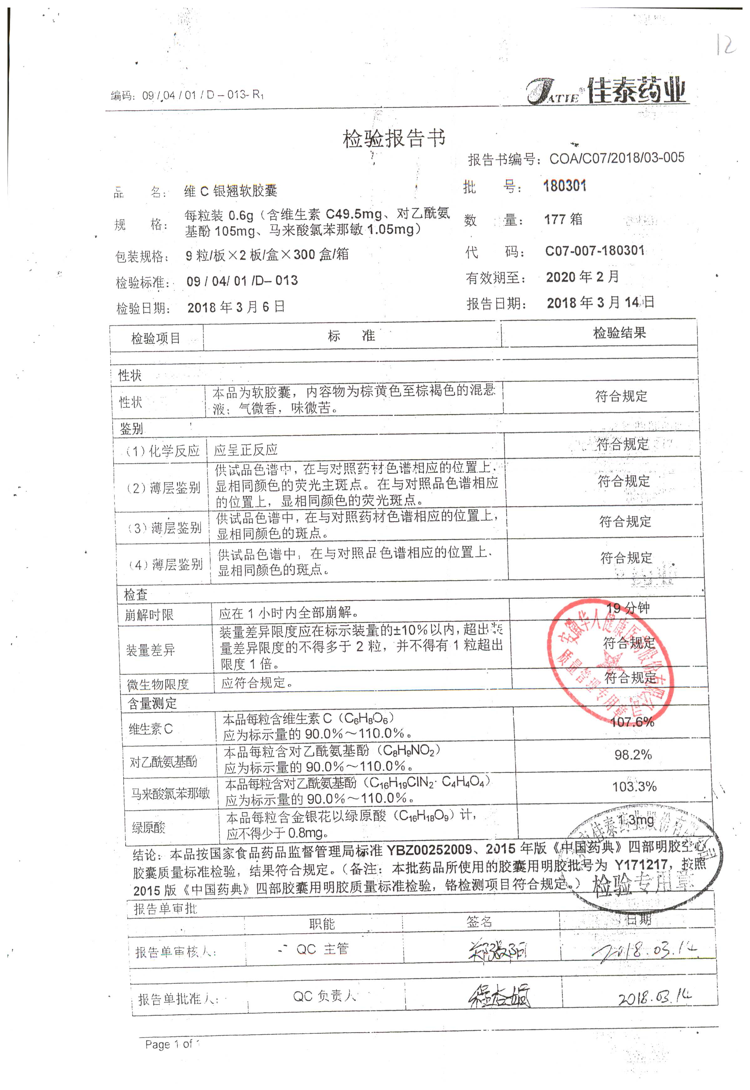 | 維C銀翹軟膠囊 | 0.6g*18s | 220401 | 查看詳情 |