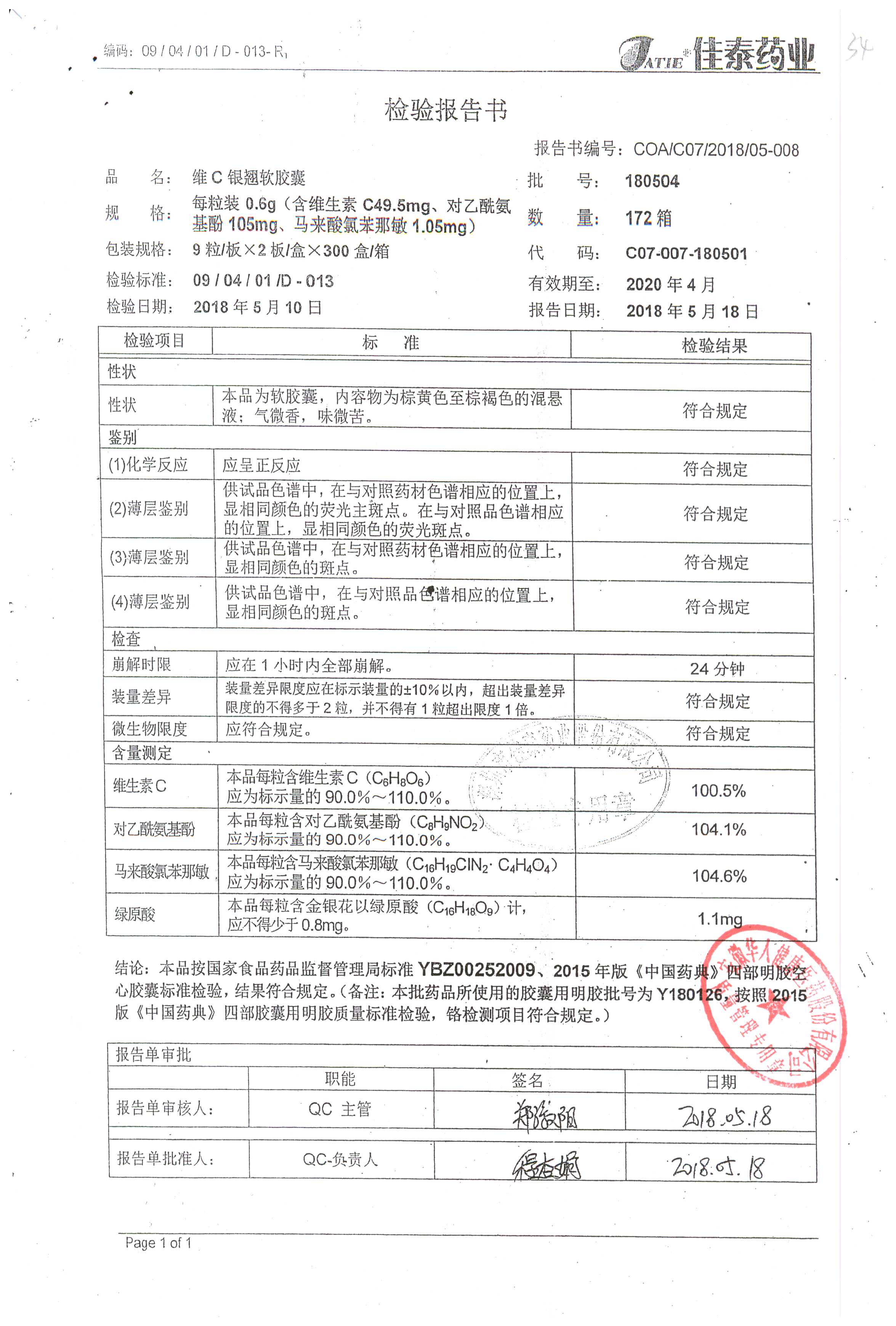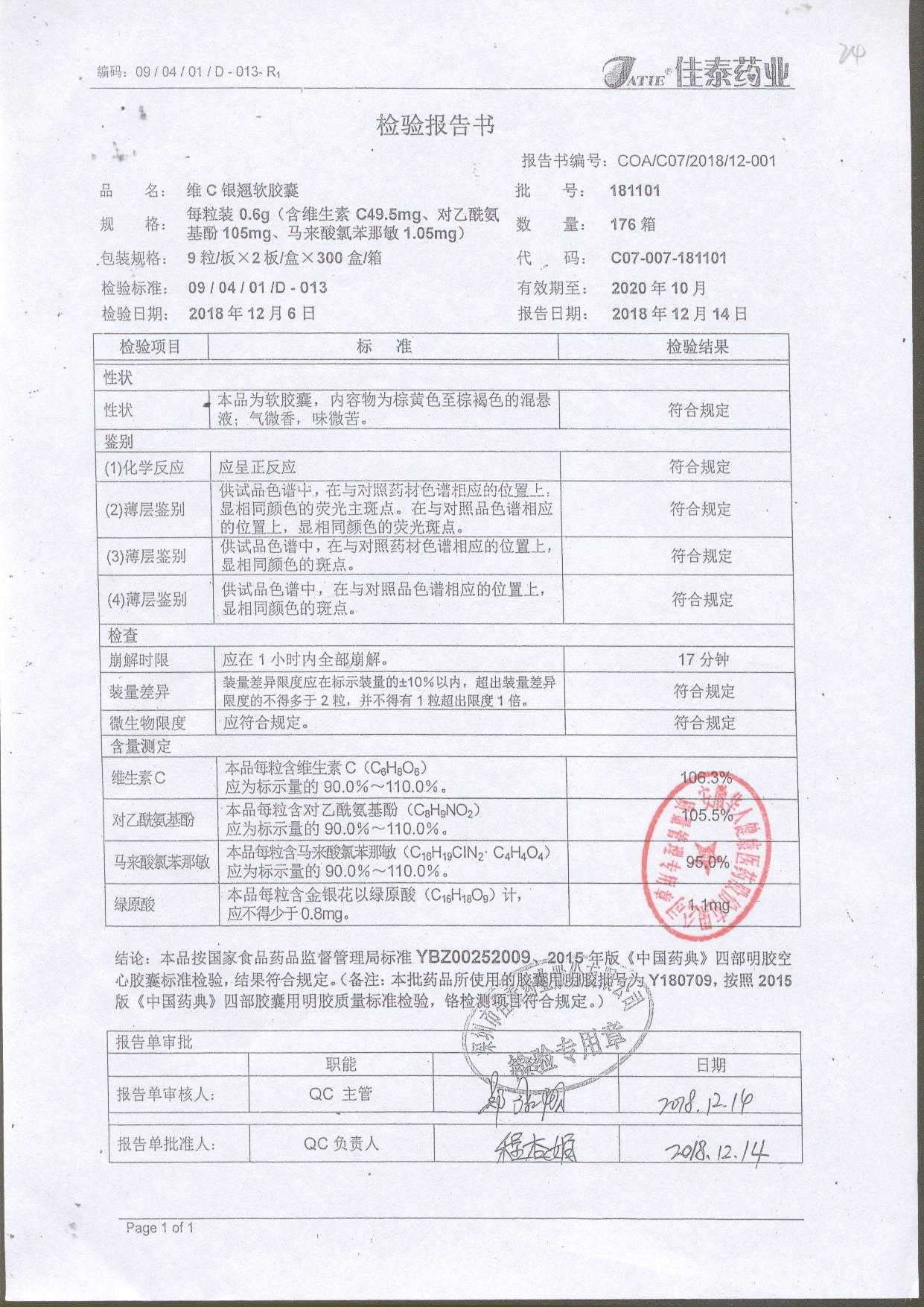 | 維C銀翹軟膠囊 | 0.6g*18s | 181101 | 查看詳情 |