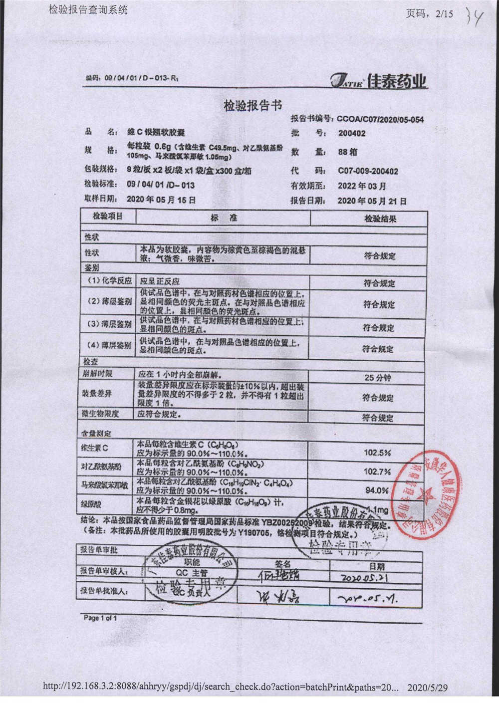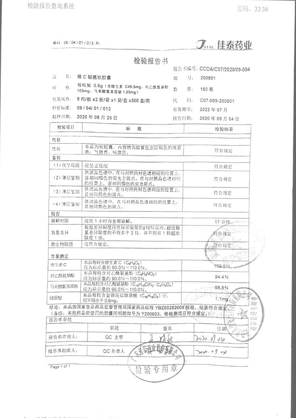 | 維C銀翹軟膠囊 | 0.6g*18s | 200801 | 查看詳情 |