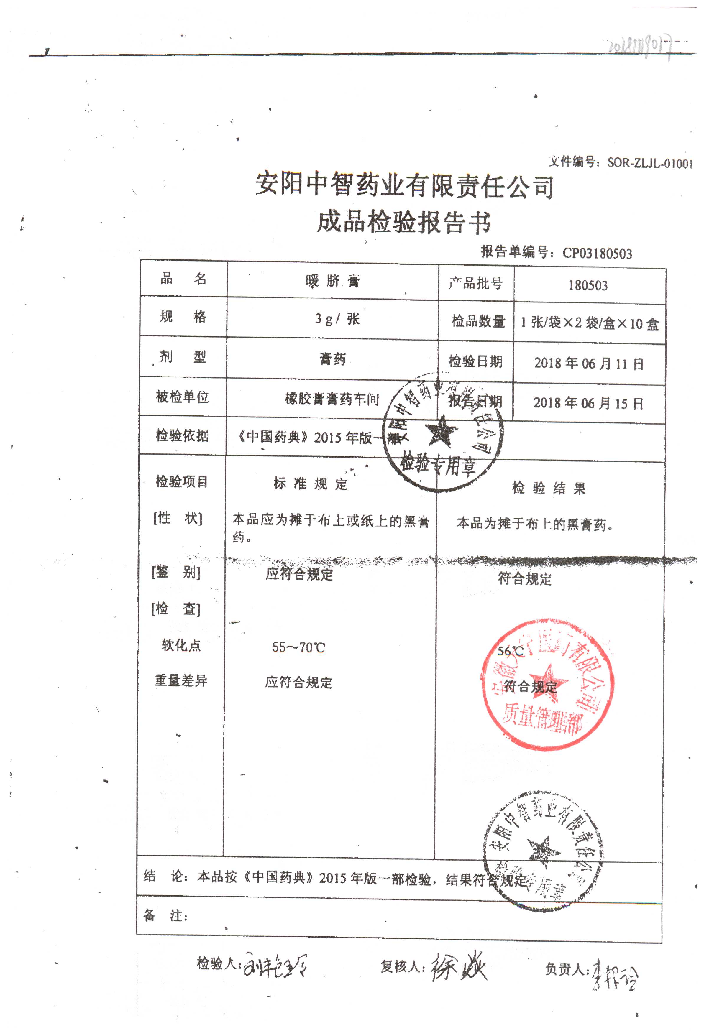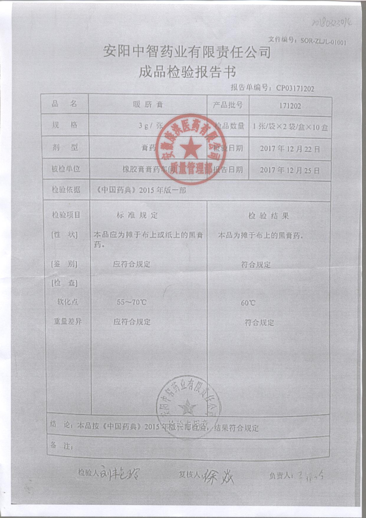 名稱 規格 批號 藥檢報告