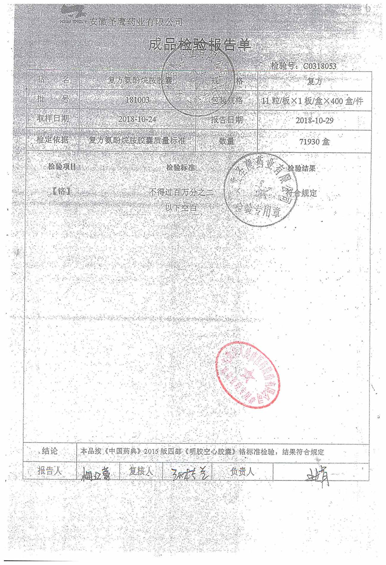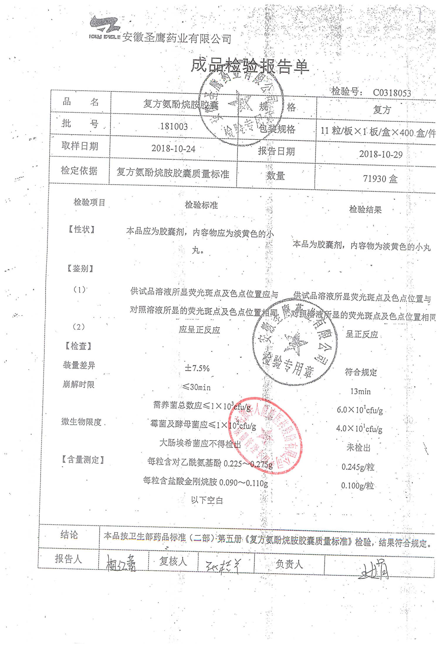 | 復方氨酚烷胺膠囊 | 11s*1 | 181105(2/2) | 查看詳情 |