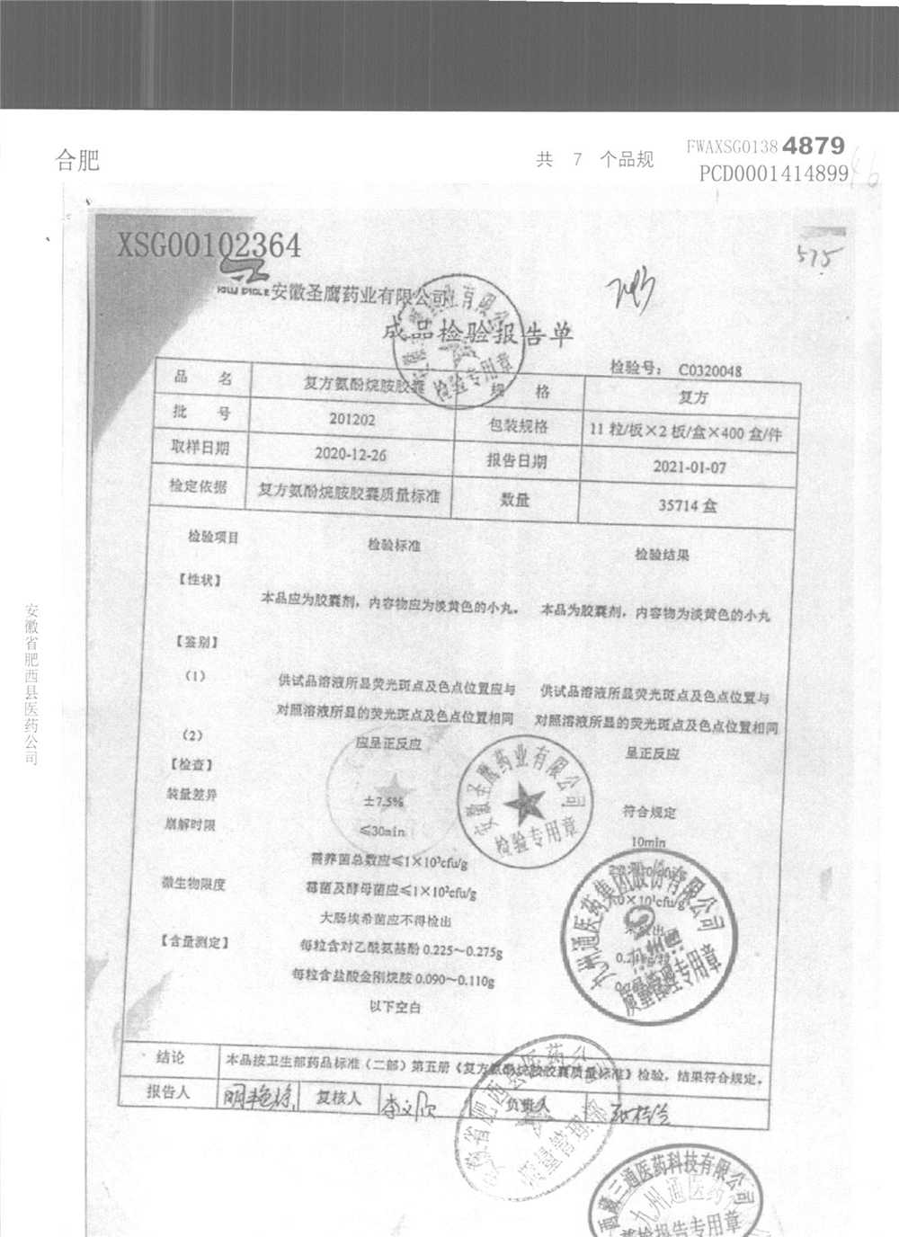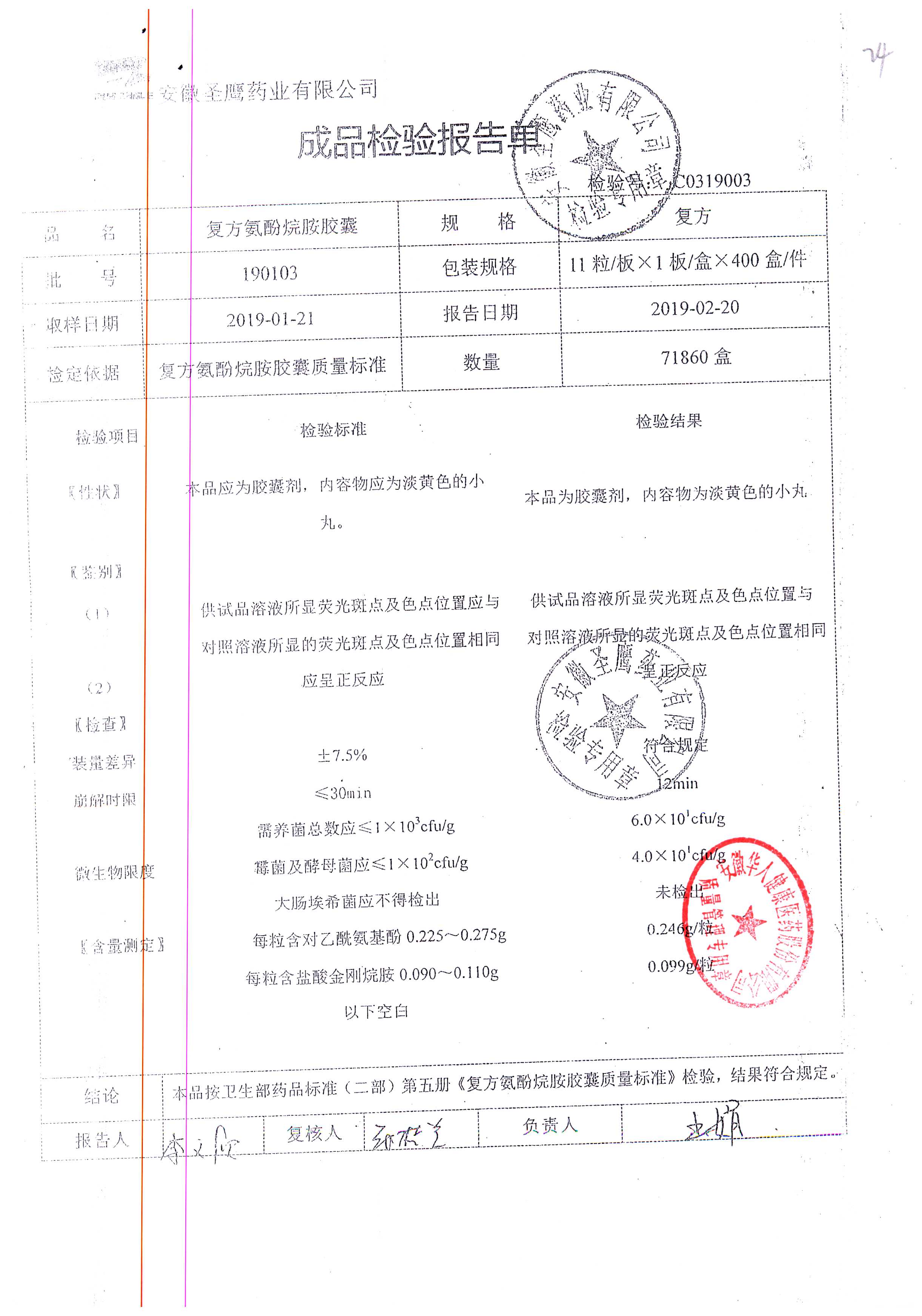 | 復方氨酚烷胺膠囊 | 11s*1 | 201005(2/2) | 查看詳情 |