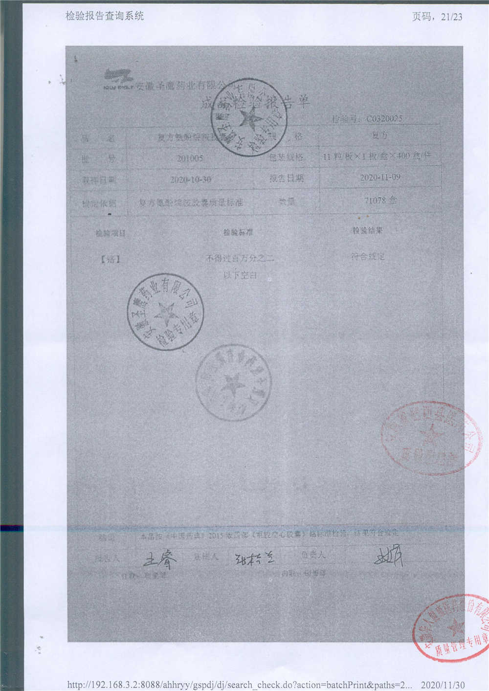 | 復方氨酚烷胺膠囊 | 11s*1 | 201202(2/2) | 查看詳情 |