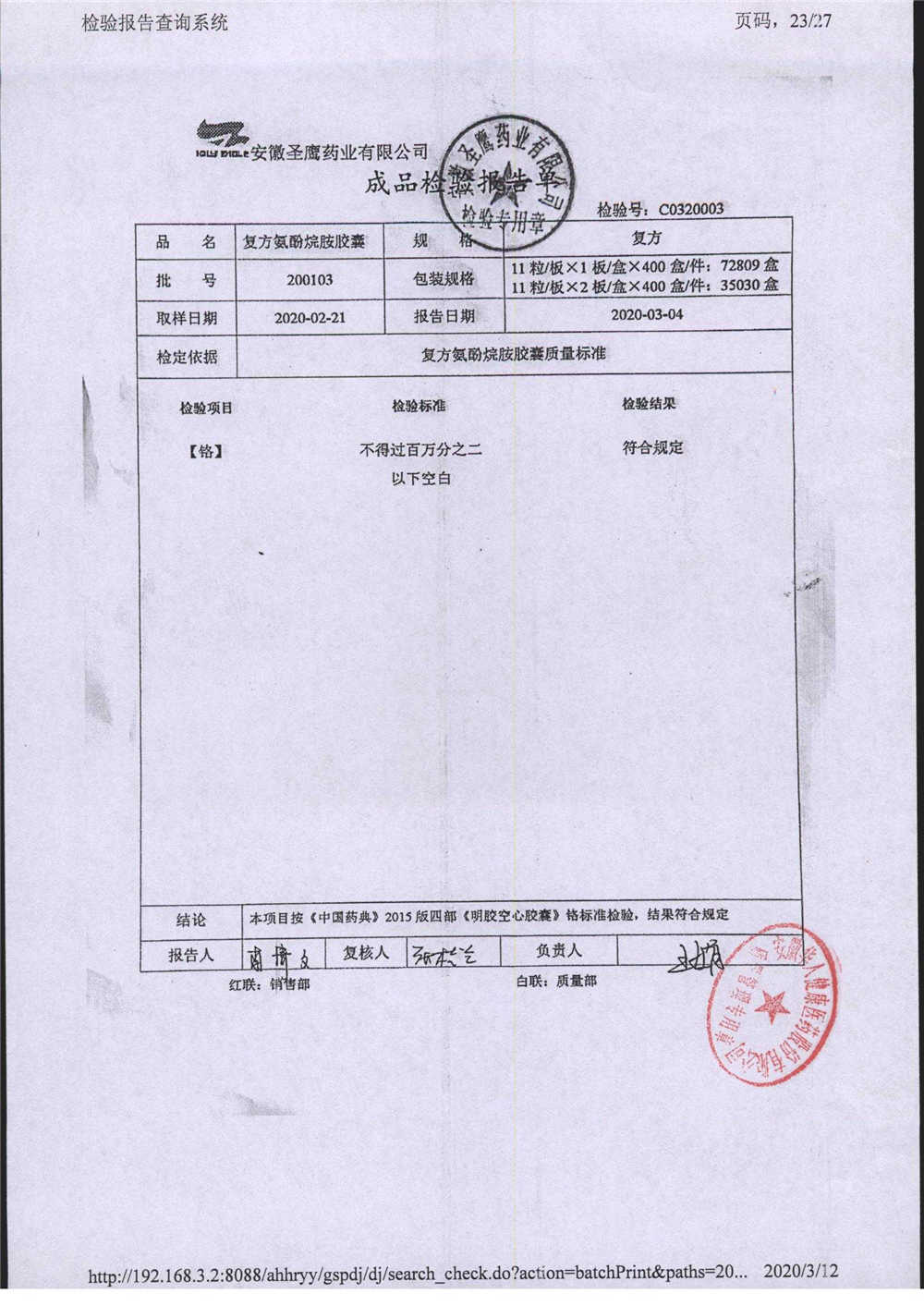 | 復方氨酚烷胺膠囊 | 11s*1 | 200404(1/2) | 查看詳情 |