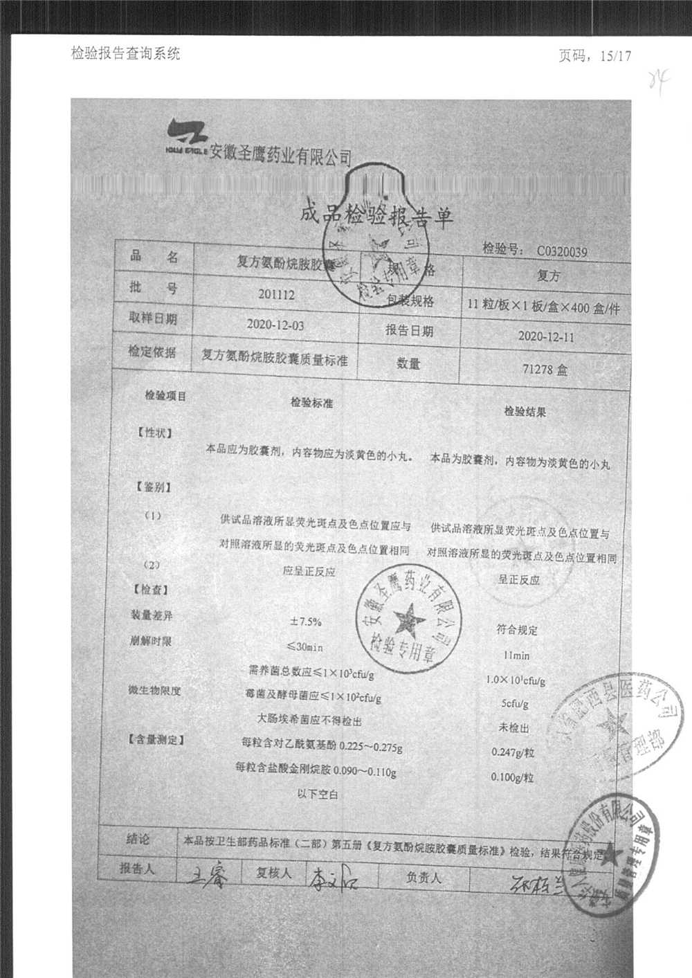 | 復方氨酚烷胺膠囊 | 11s*1 | 201201(1/2) | 查看詳情 |