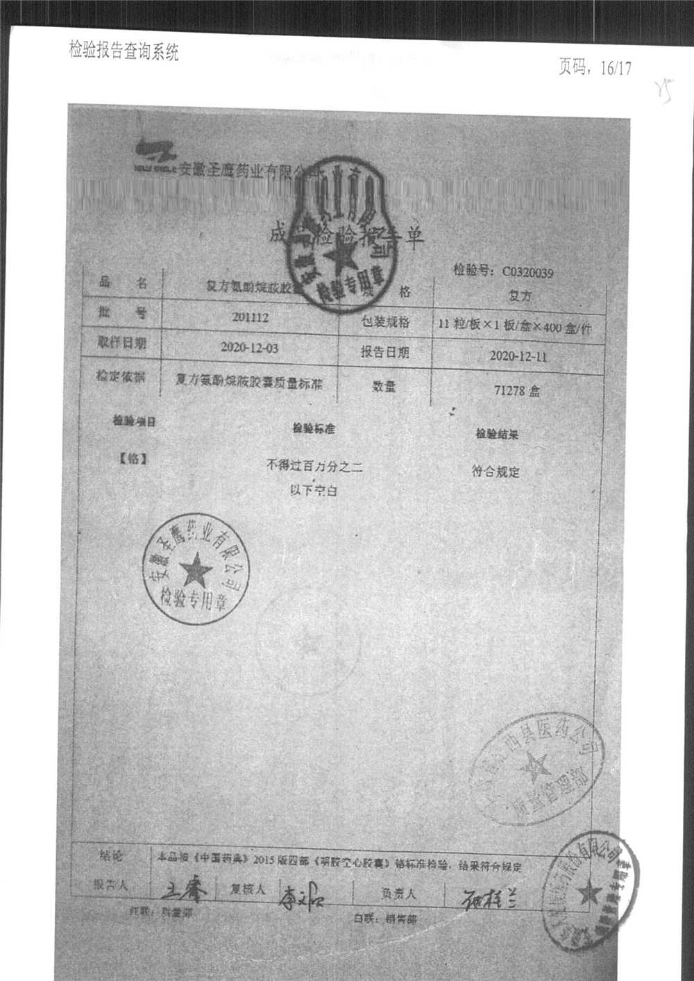 | 復方氨酚烷胺膠囊 | 11s*1 | 201202(1/2) | 查看詳情 |