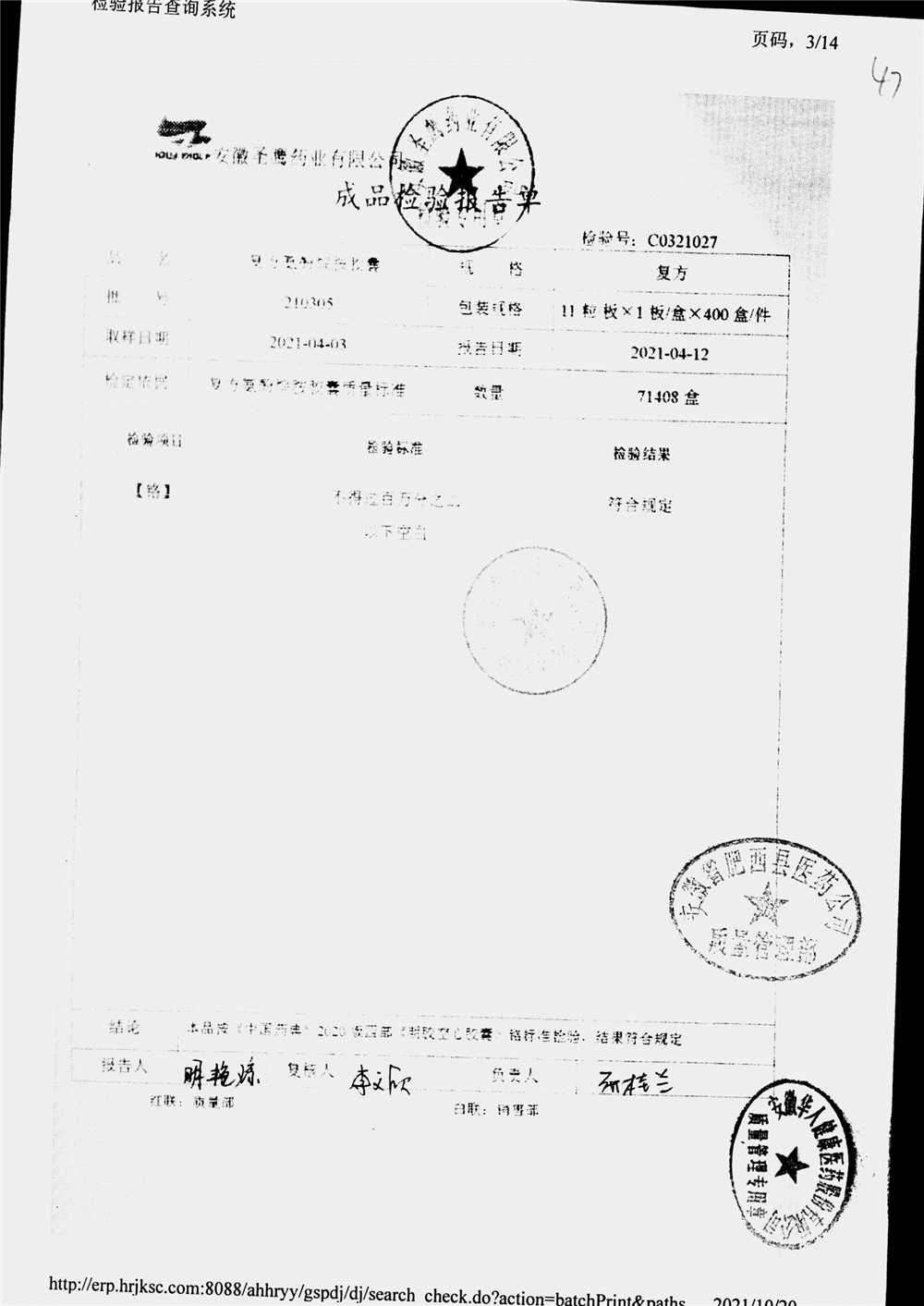 | 復方氨酚烷胺膠囊 | 11s*1 | 210307(1/2) | 查看詳情 |