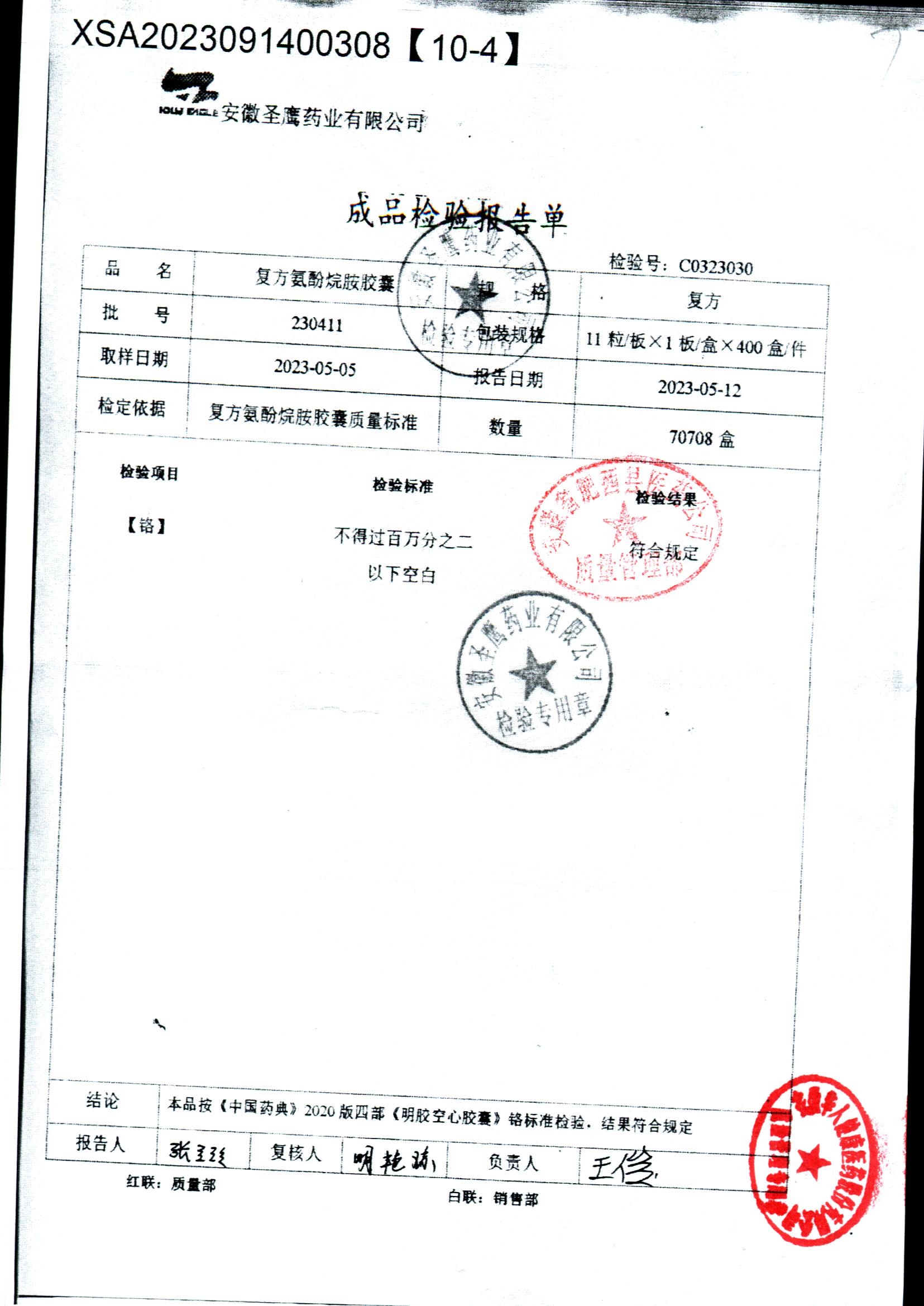 | 復方氨酚烷胺膠囊 | 11s*1 | 230411/1 | 查看詳情 |