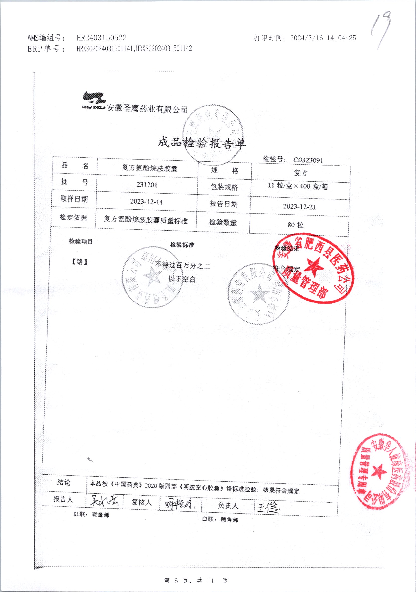 | 復方氨酚烷胺膠囊 | 11s*1 | 231201/1 | 查看詳情 |