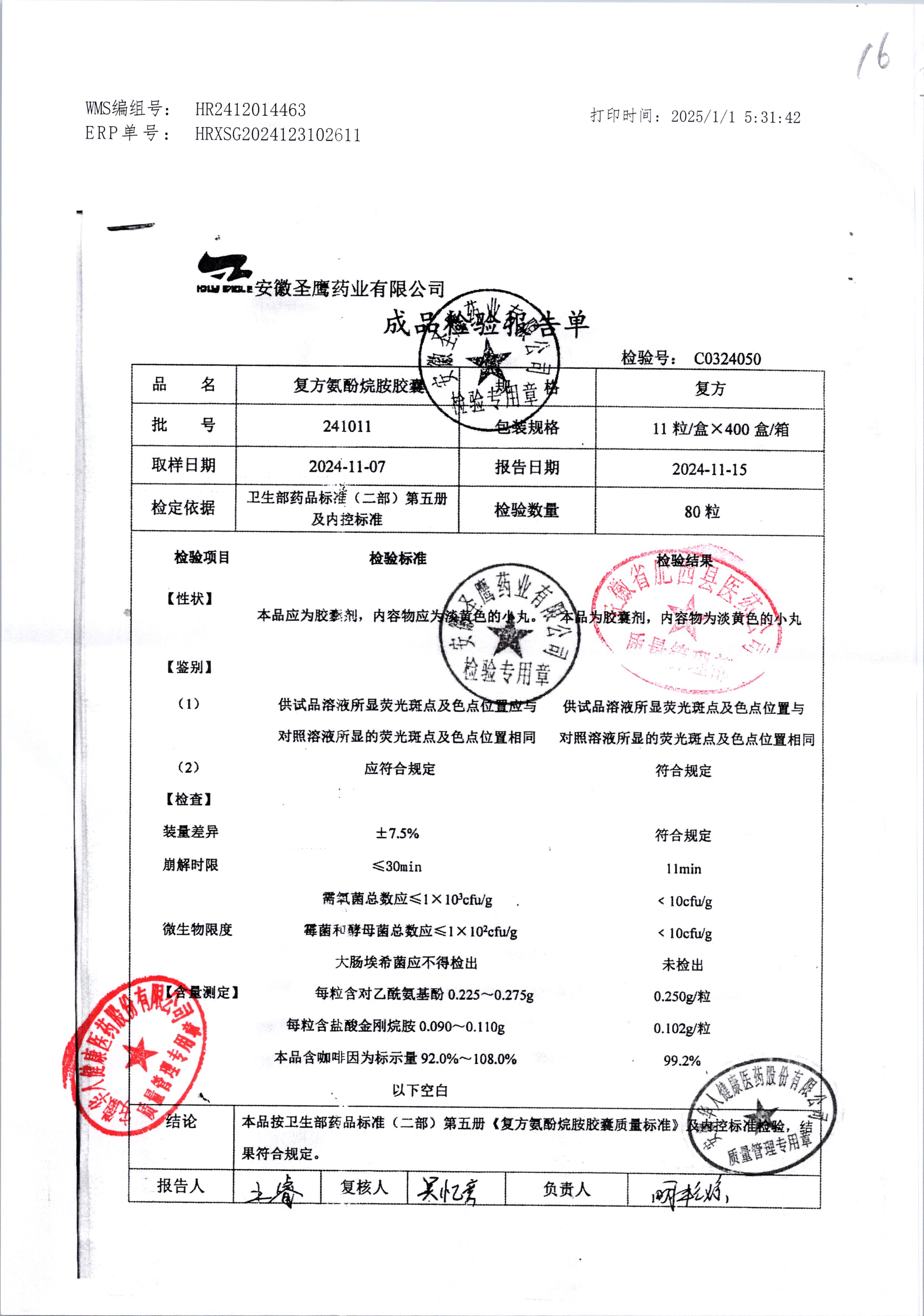 | 復方氨酚烷胺膠囊 | 11s*1 | 241011/2 | 查看詳情 |