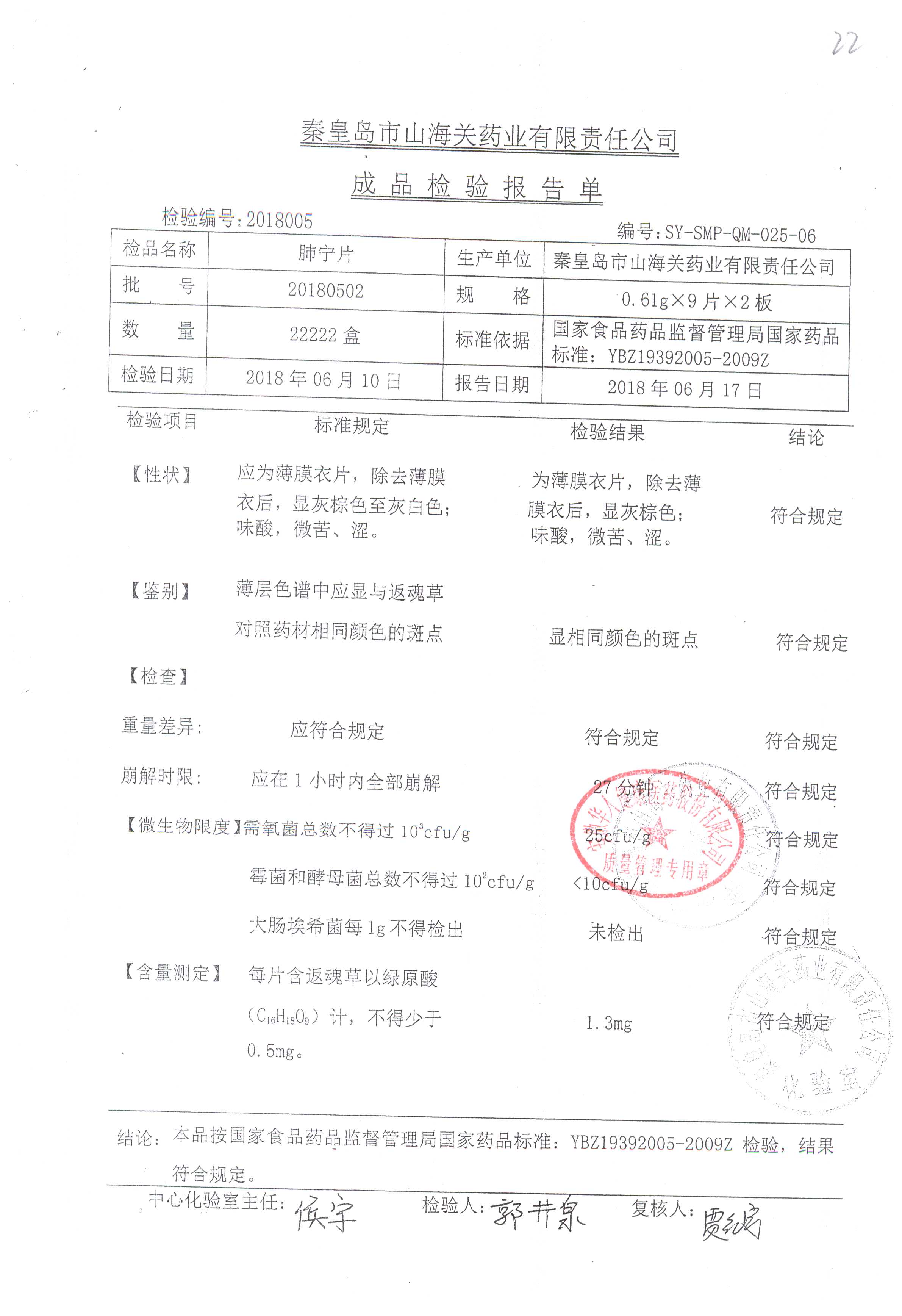 | 肺寧片 | 0.61g*18s | 20180502 | 查看詳情 |