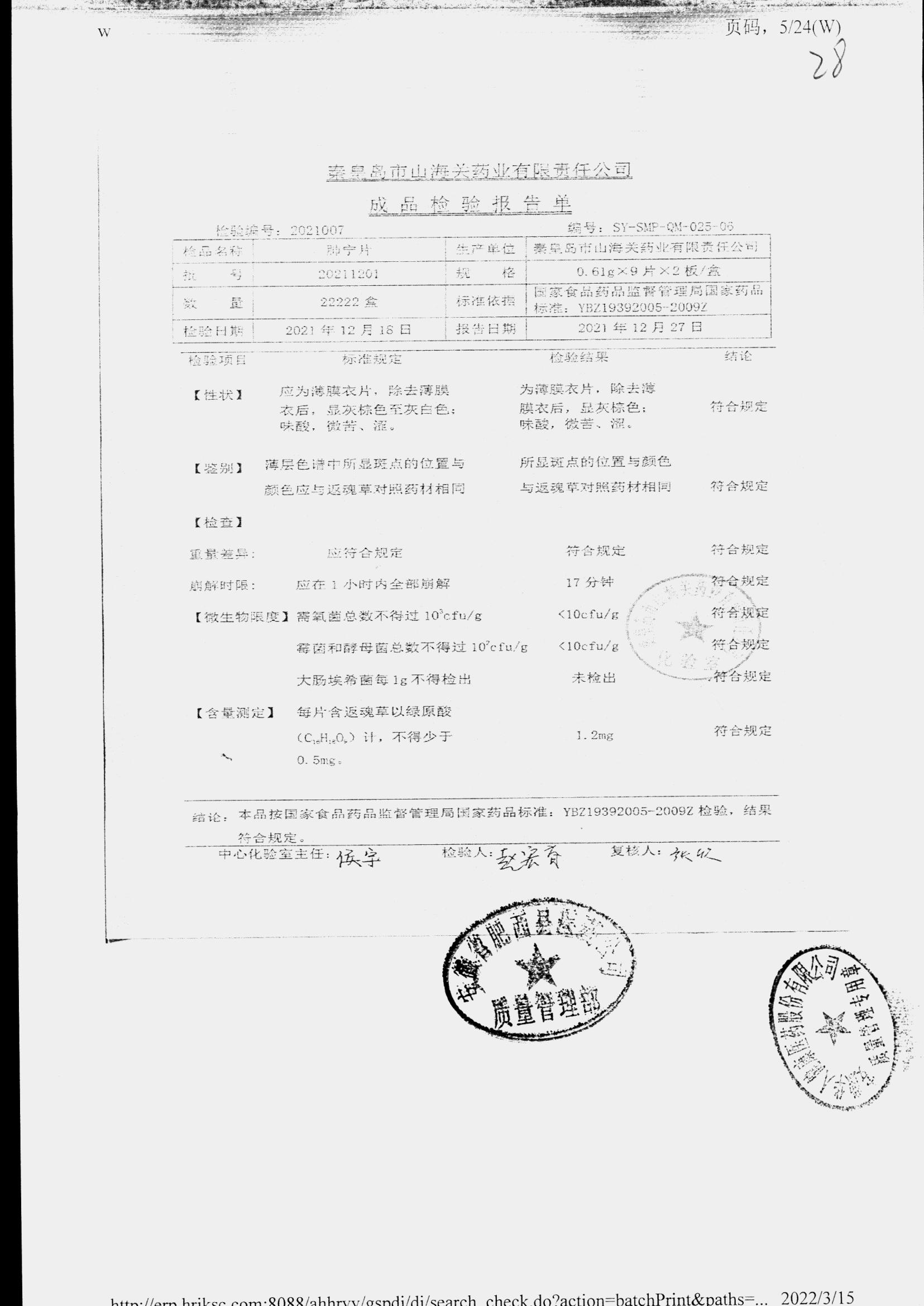 | 肺寧片 | 0.61g*18s | 20211201 | 查看詳情 |
