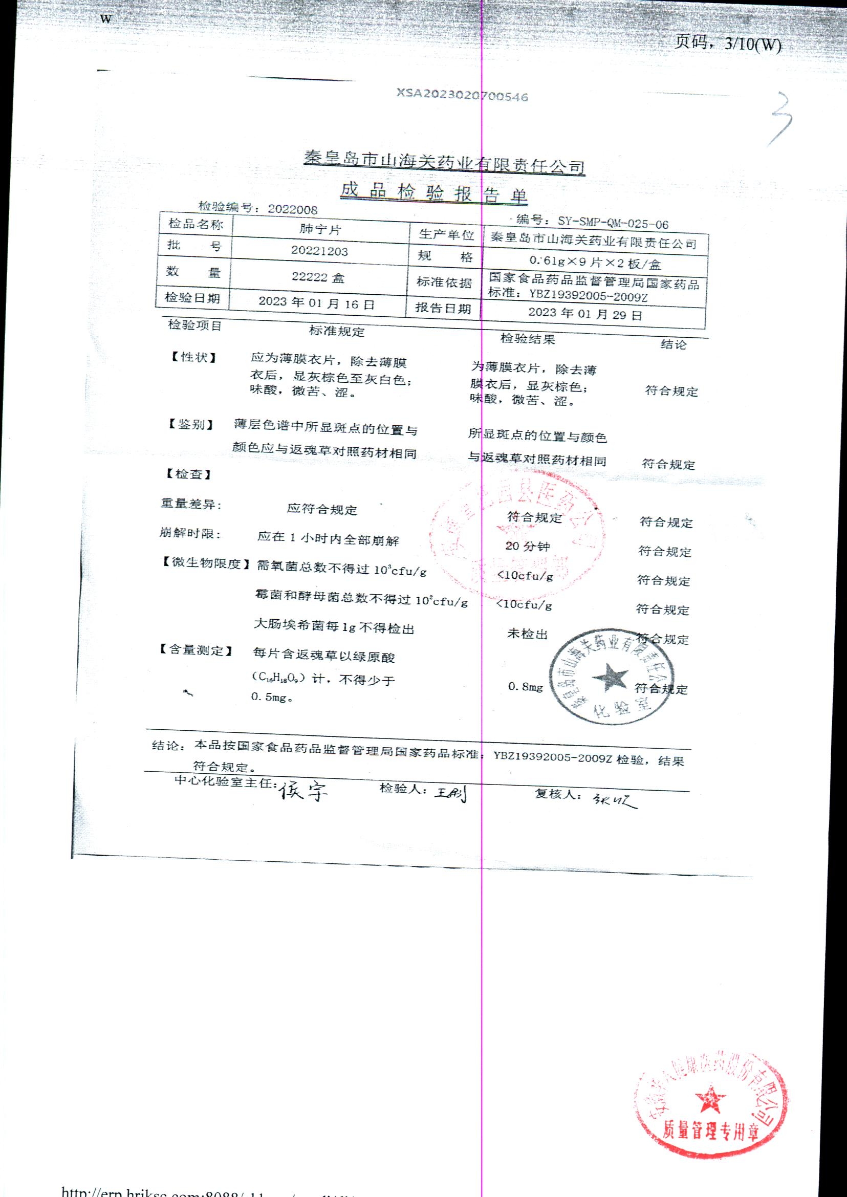 | 肺寧片 | 0.61g*18s | 20221203 | 查看詳情 |