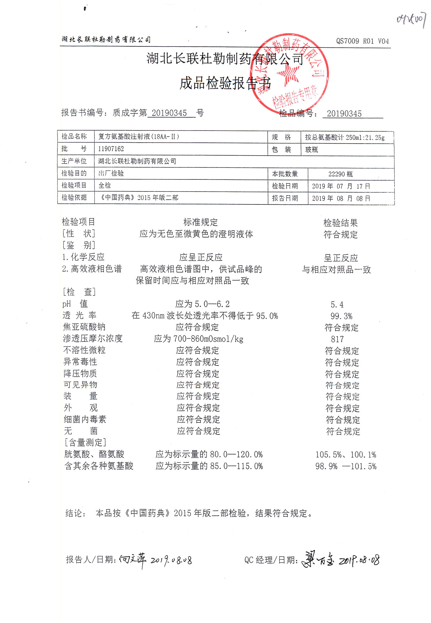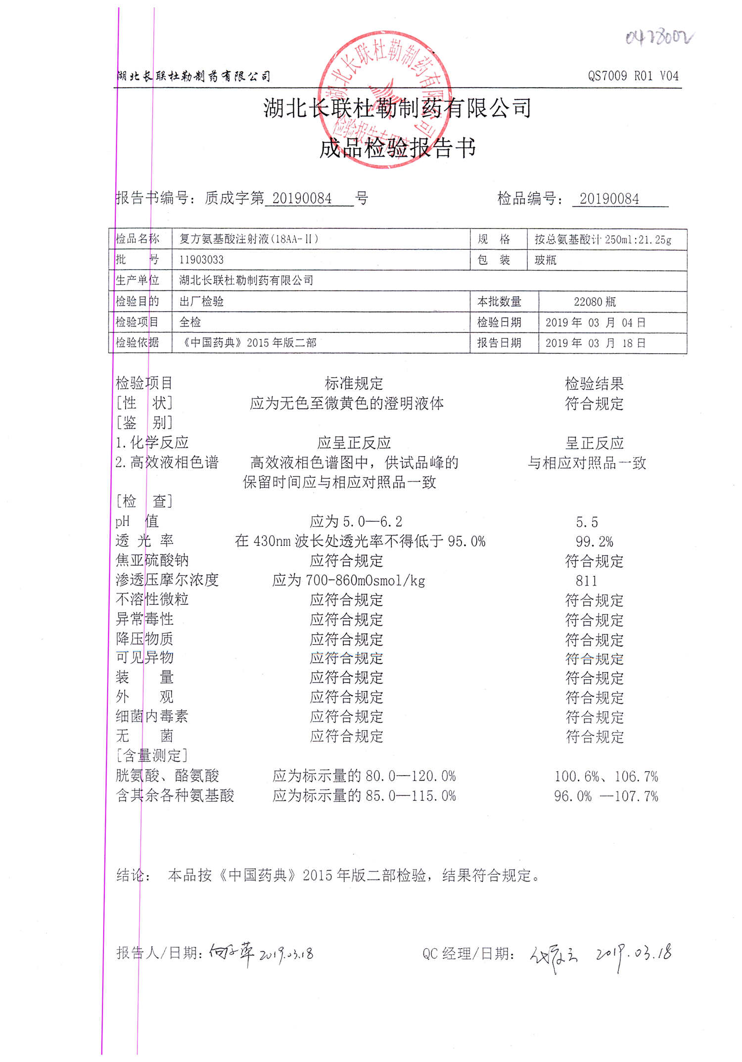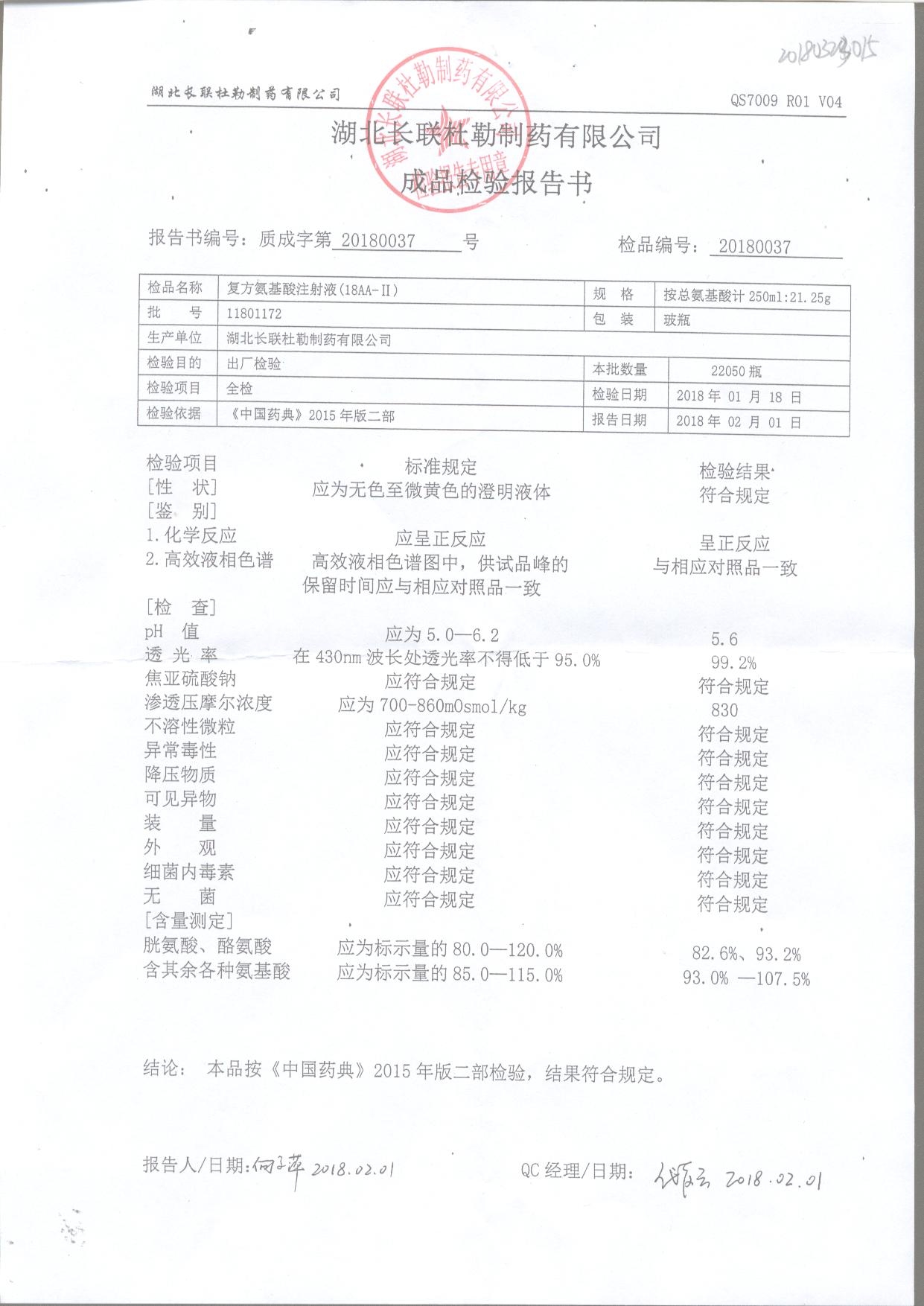 | 復(fù)方氨基酸注射液 | 250ml:21.25g | 11809201 | 查看詳情 |