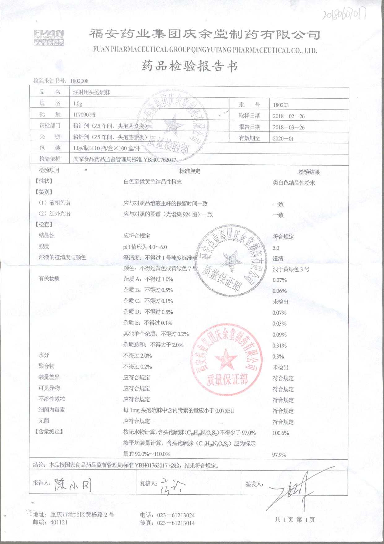 | 注射用頭孢硫脒 | 1g*10瓶 | 180203 | 查看詳情 |