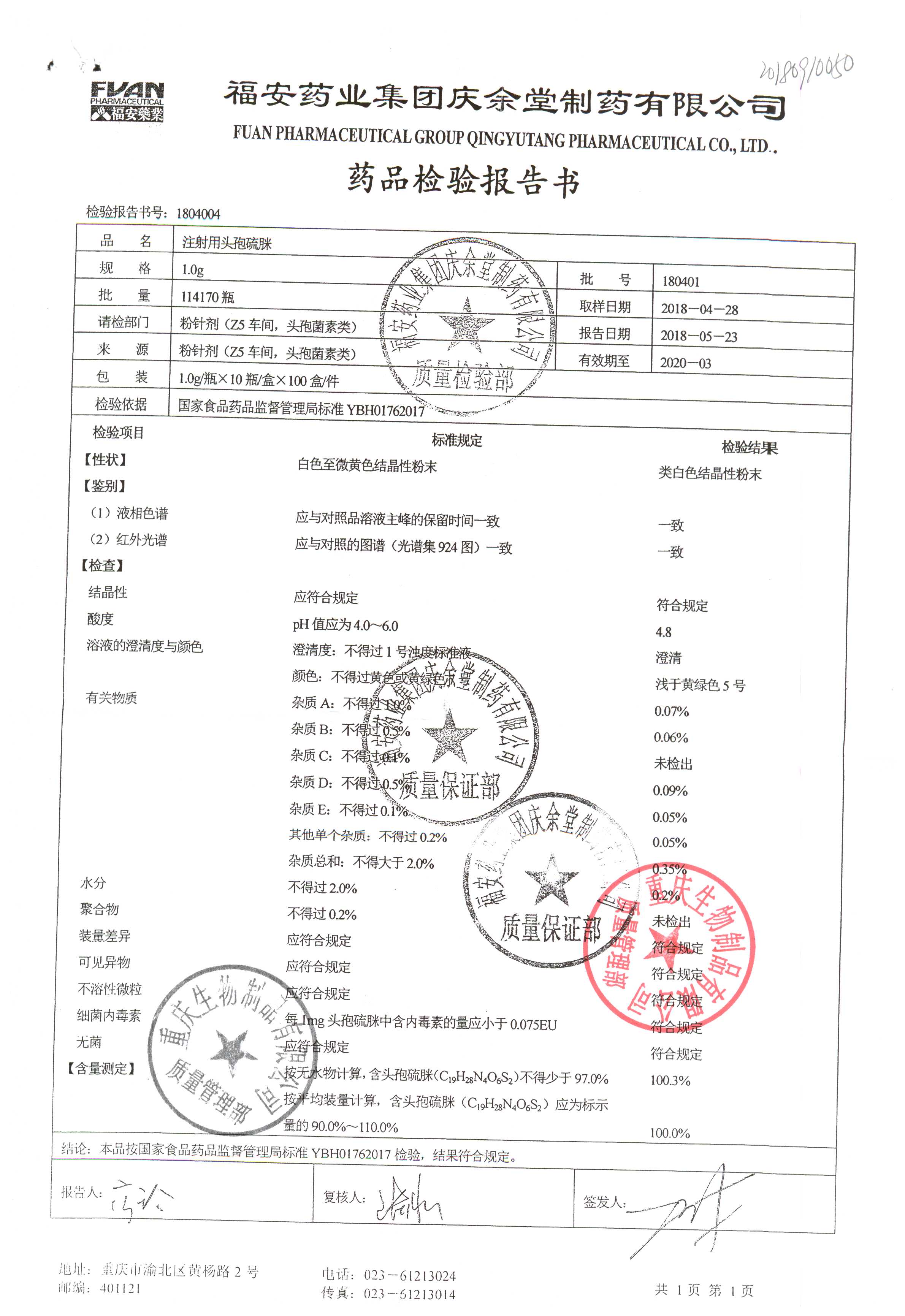 | 注射用頭孢硫脒 | 1g*10瓶 | 180401 | 查看詳情 |
