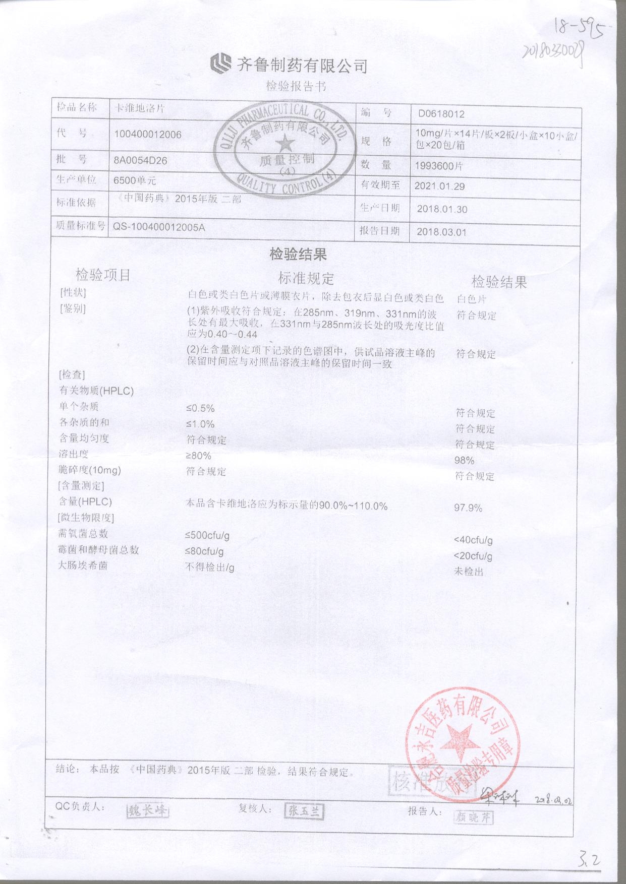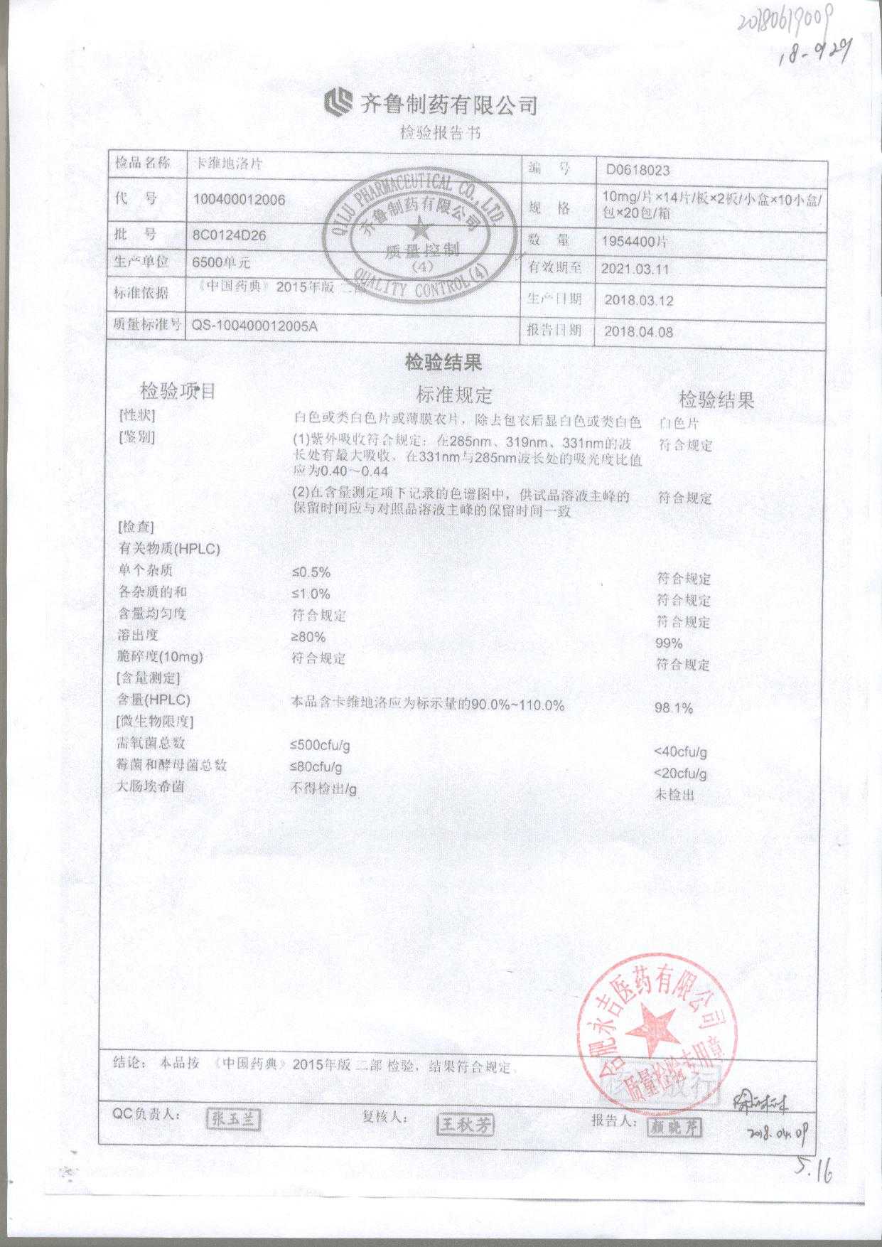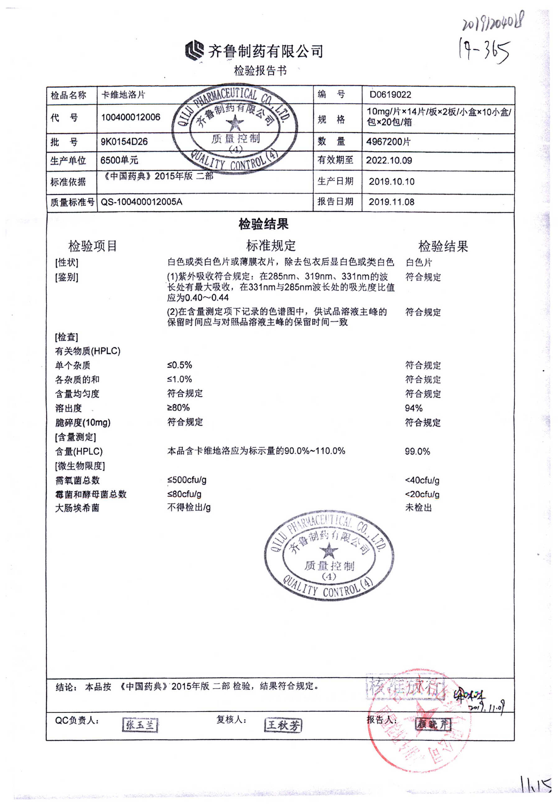 | 卡維地洛片 | 10mg*14*2 | 9C0064D26 | 查看詳情 |