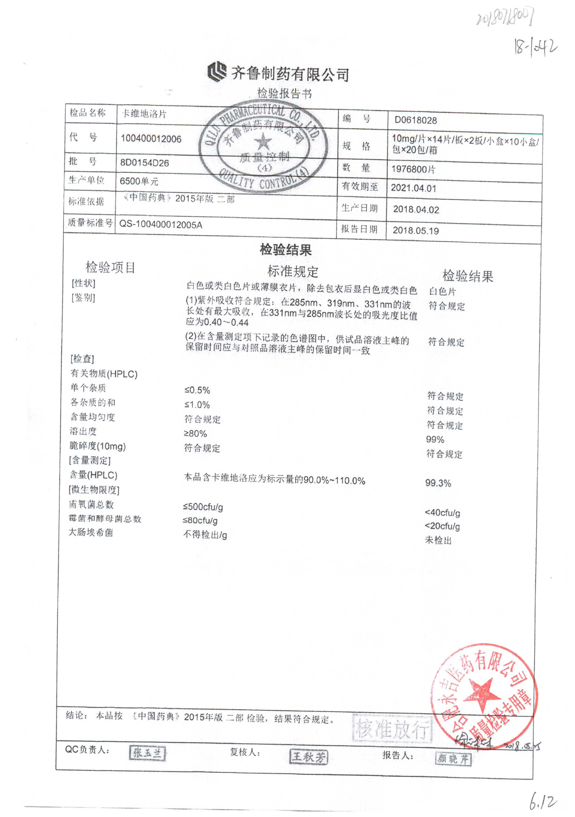 | 卡維地洛片 | 10mg*14*2 | 8A0054D26 | 查看詳情 |