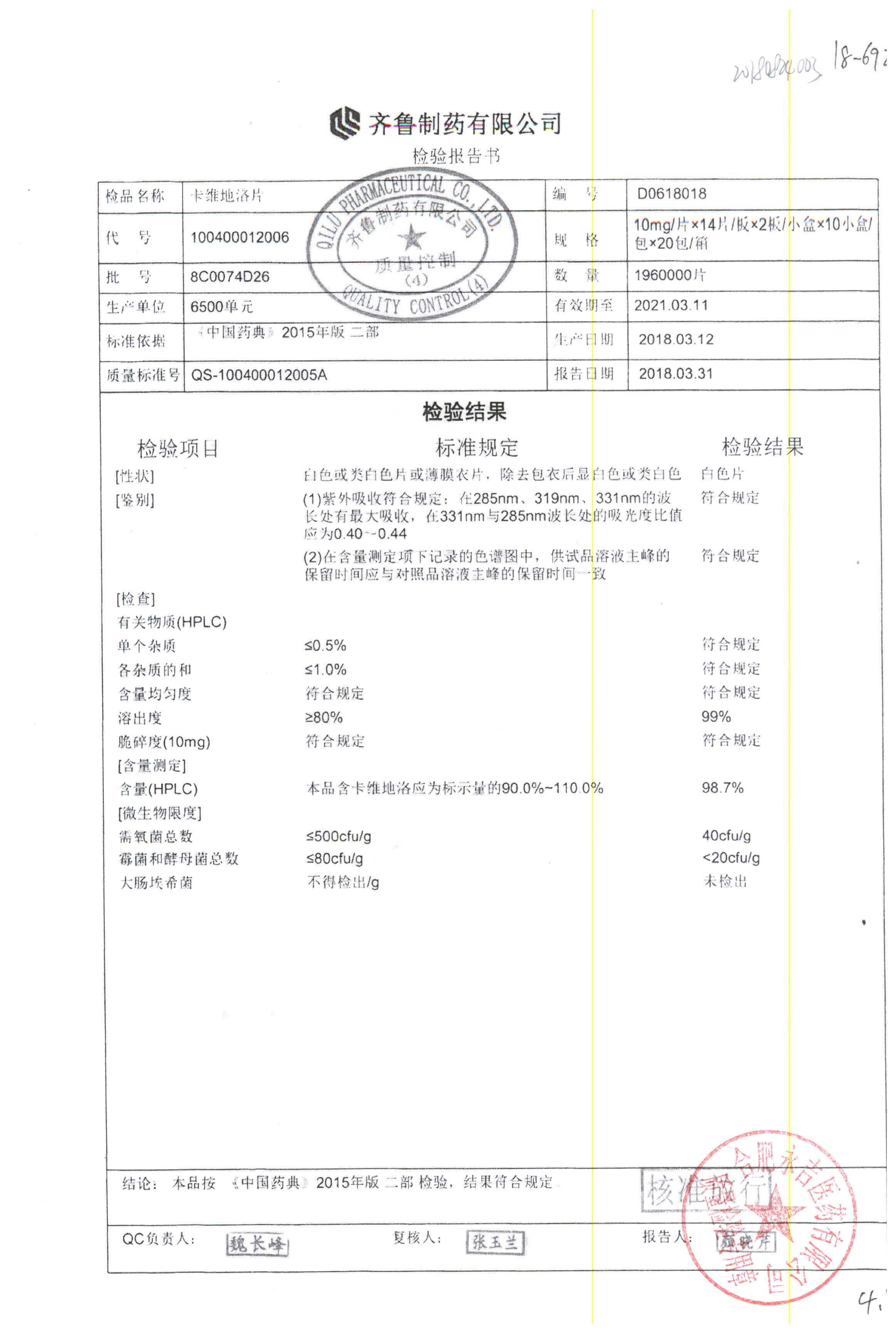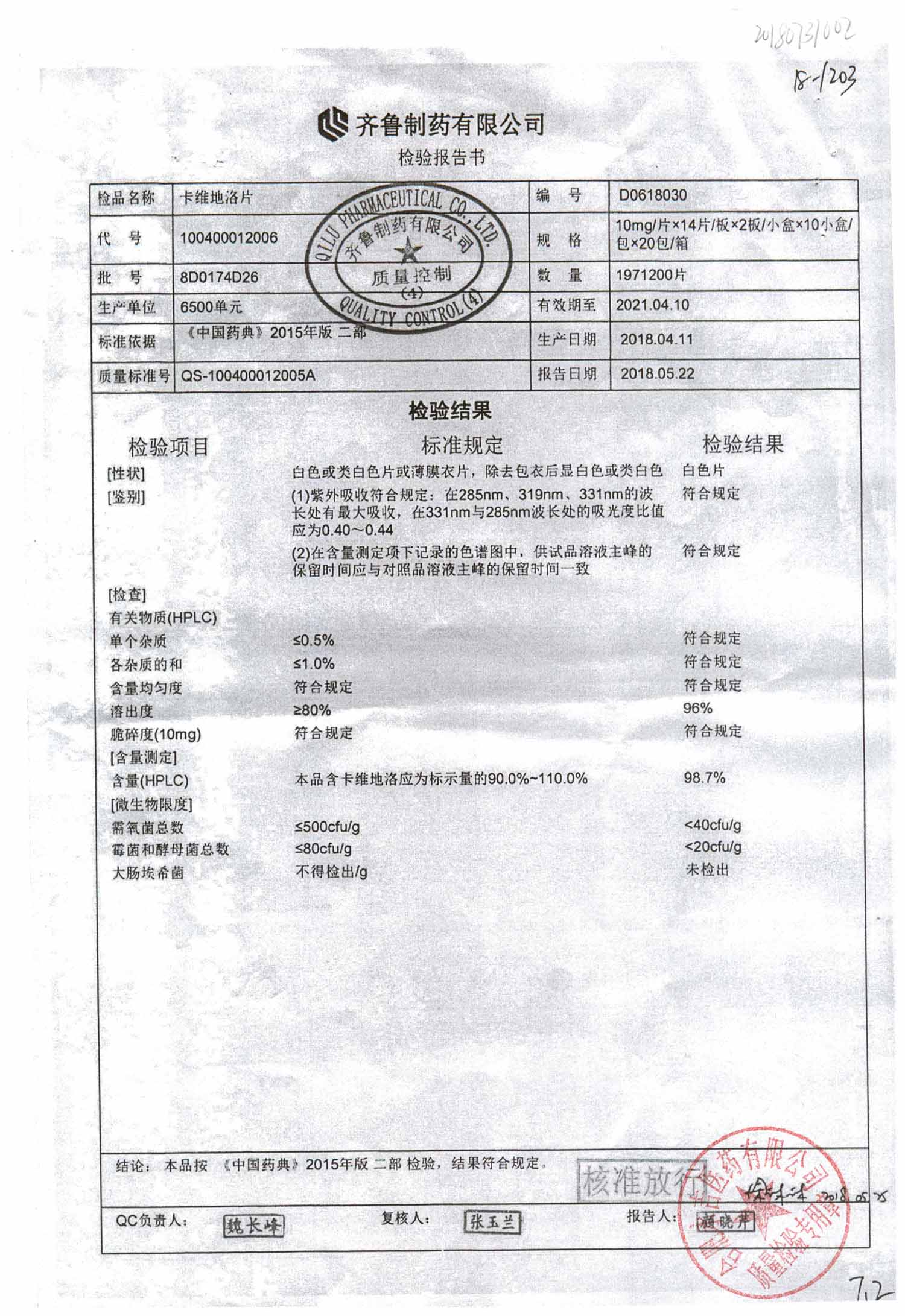 | 卡維地洛片 | 10mg*14*2 | 8C0074D26 | 查看詳情 |
