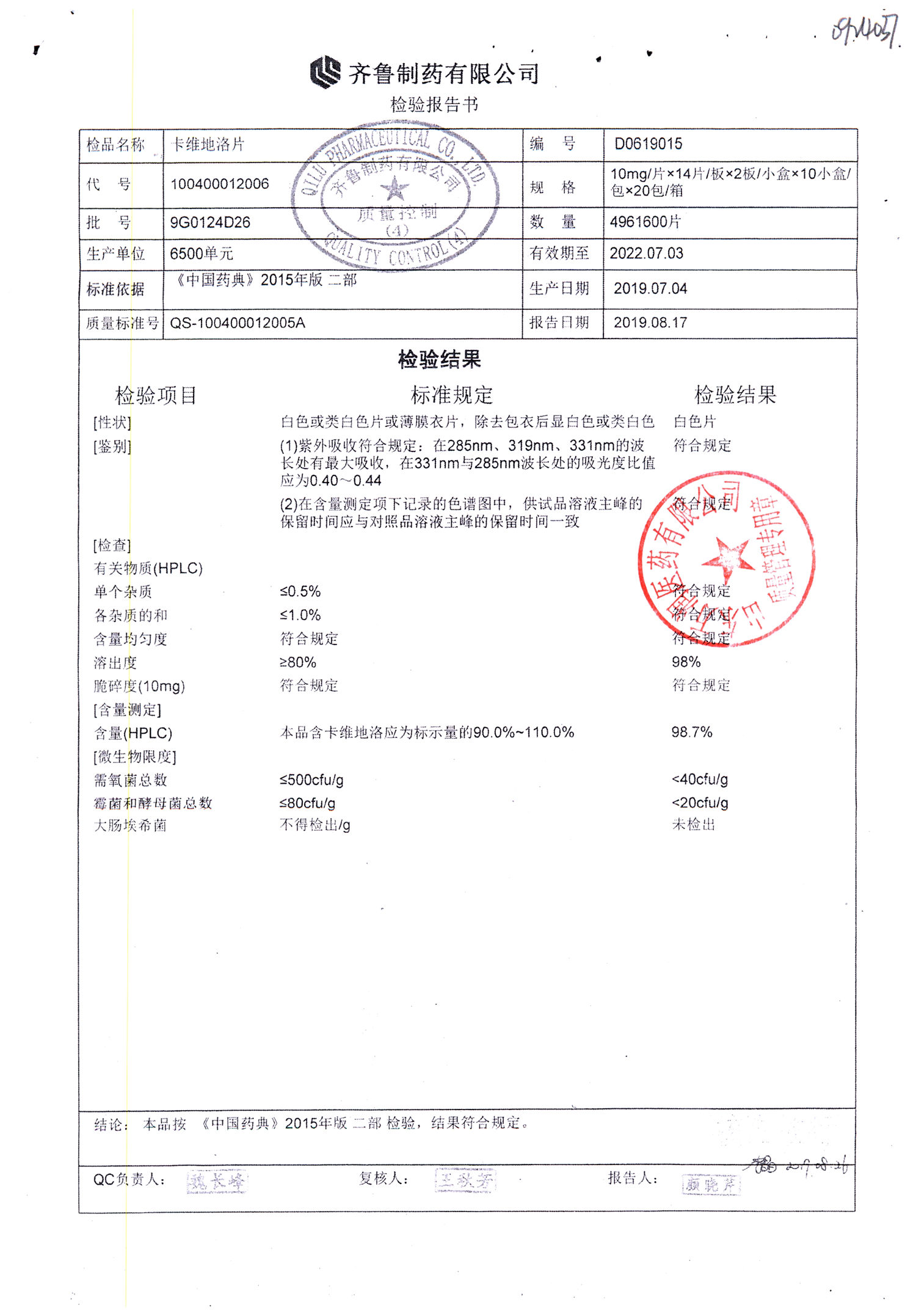 | 卡維地洛片 | 10mg*14*2 | 0G0124D26 | 查看詳情 |