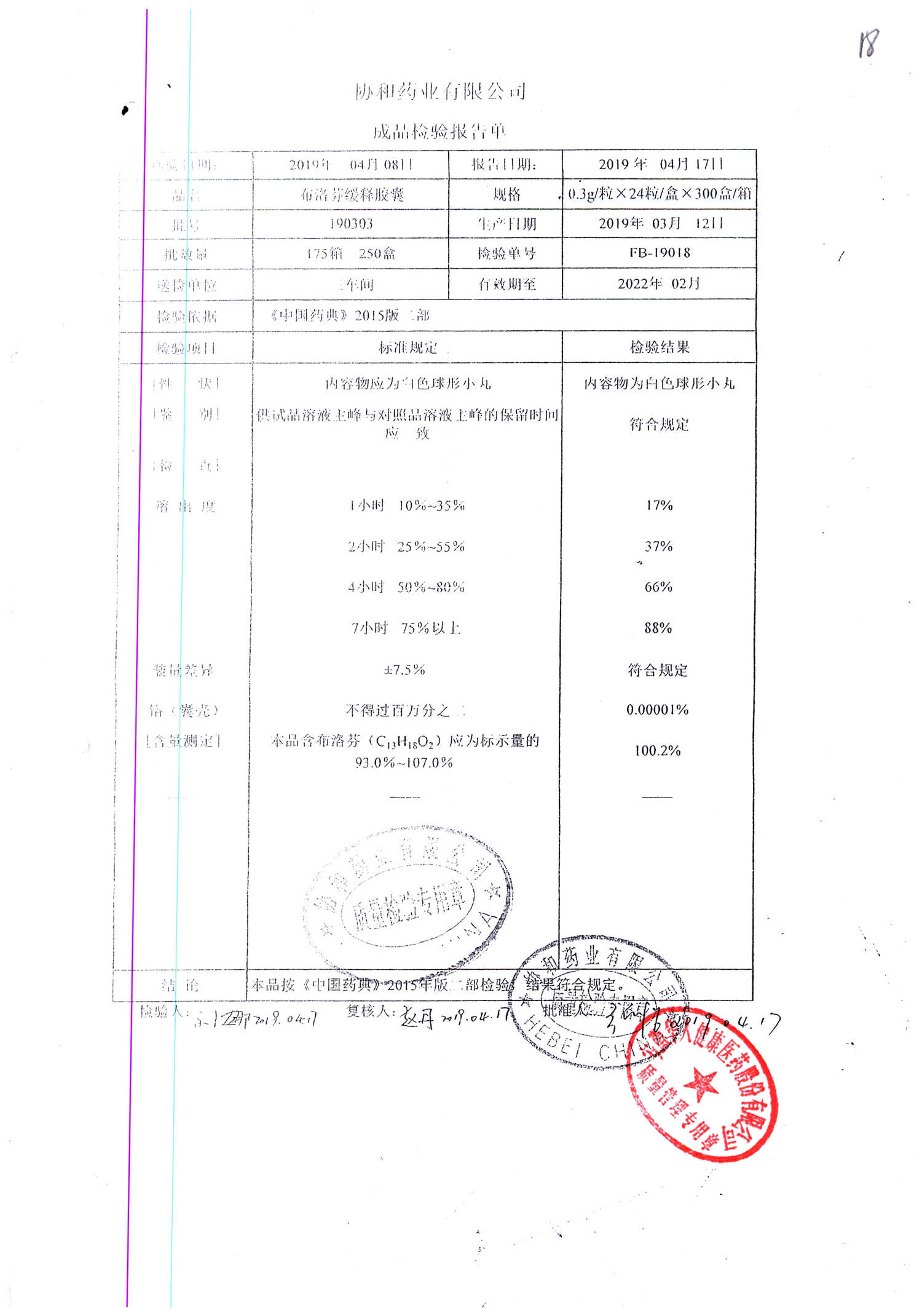 | 布洛芬緩釋膠囊 | 0.3g*24s | 191207 | 查看詳情 |