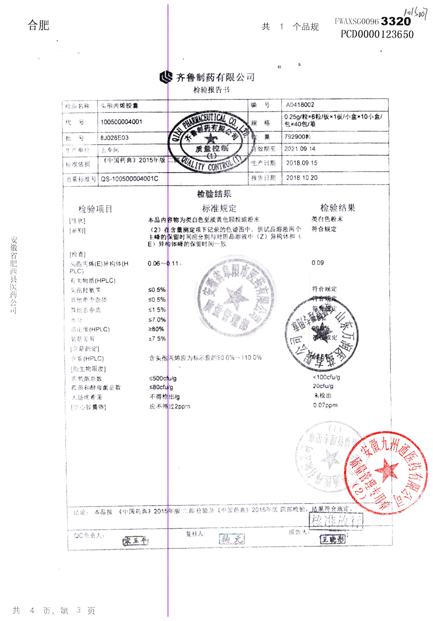 | 名稱 | 規(guī)格 | 批號 | 藥檢報告 |